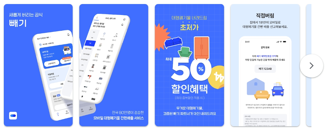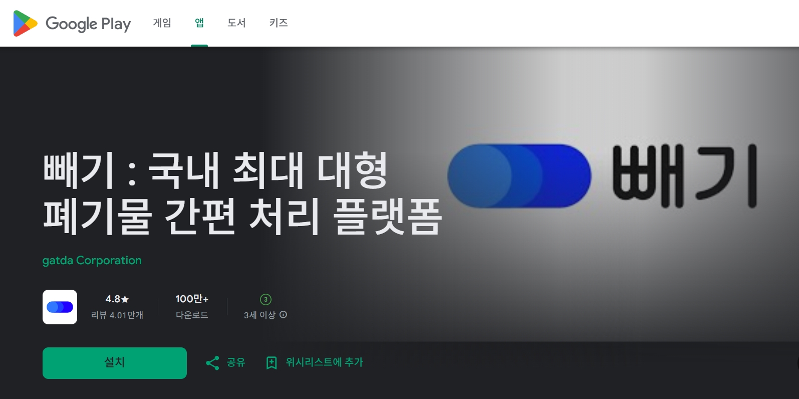 - ‘빼기’ 앱: 사진 찍고 신청하면 수거까지 연결되는 서비스예요