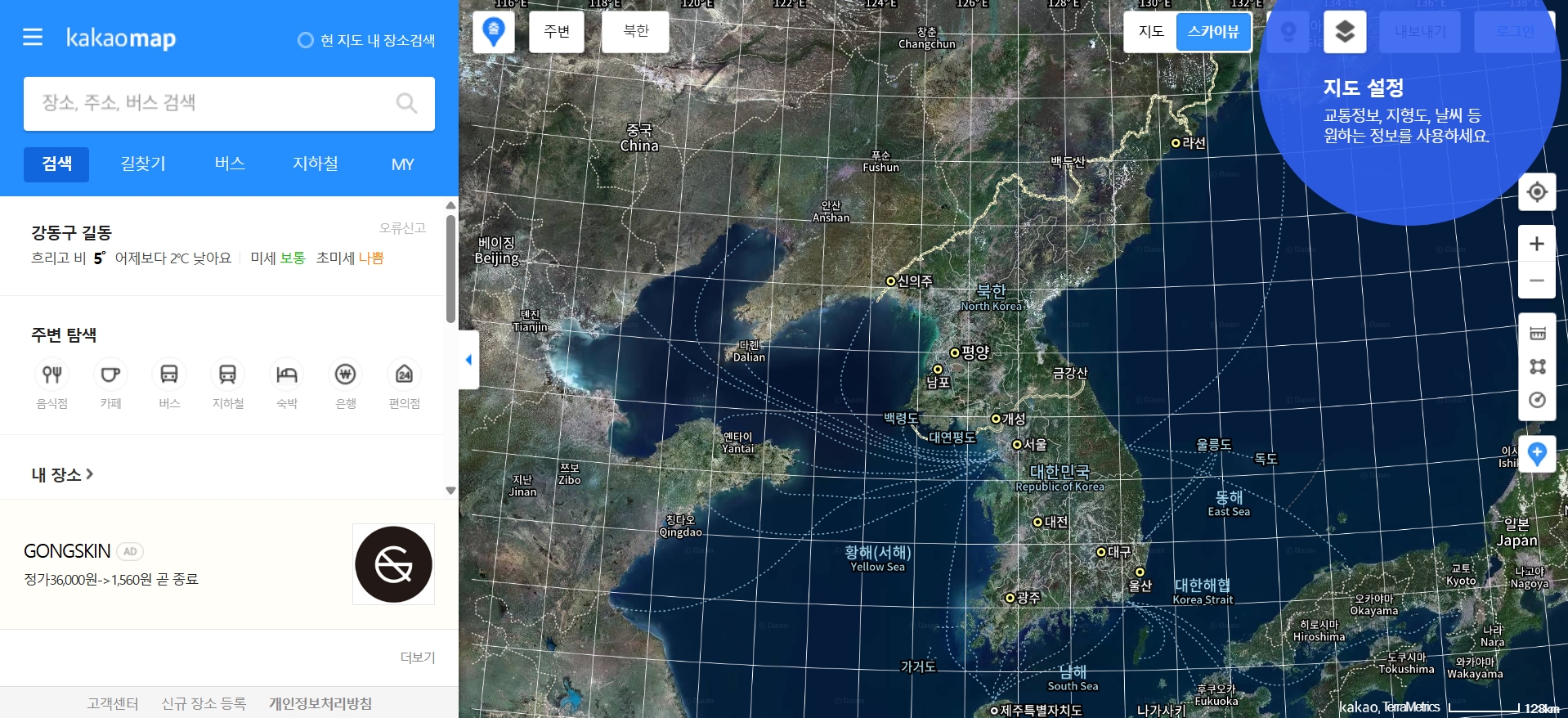 - 다음 지도: 기본 지도에서 버튼 하나로 위성 화면 변경 가능해요