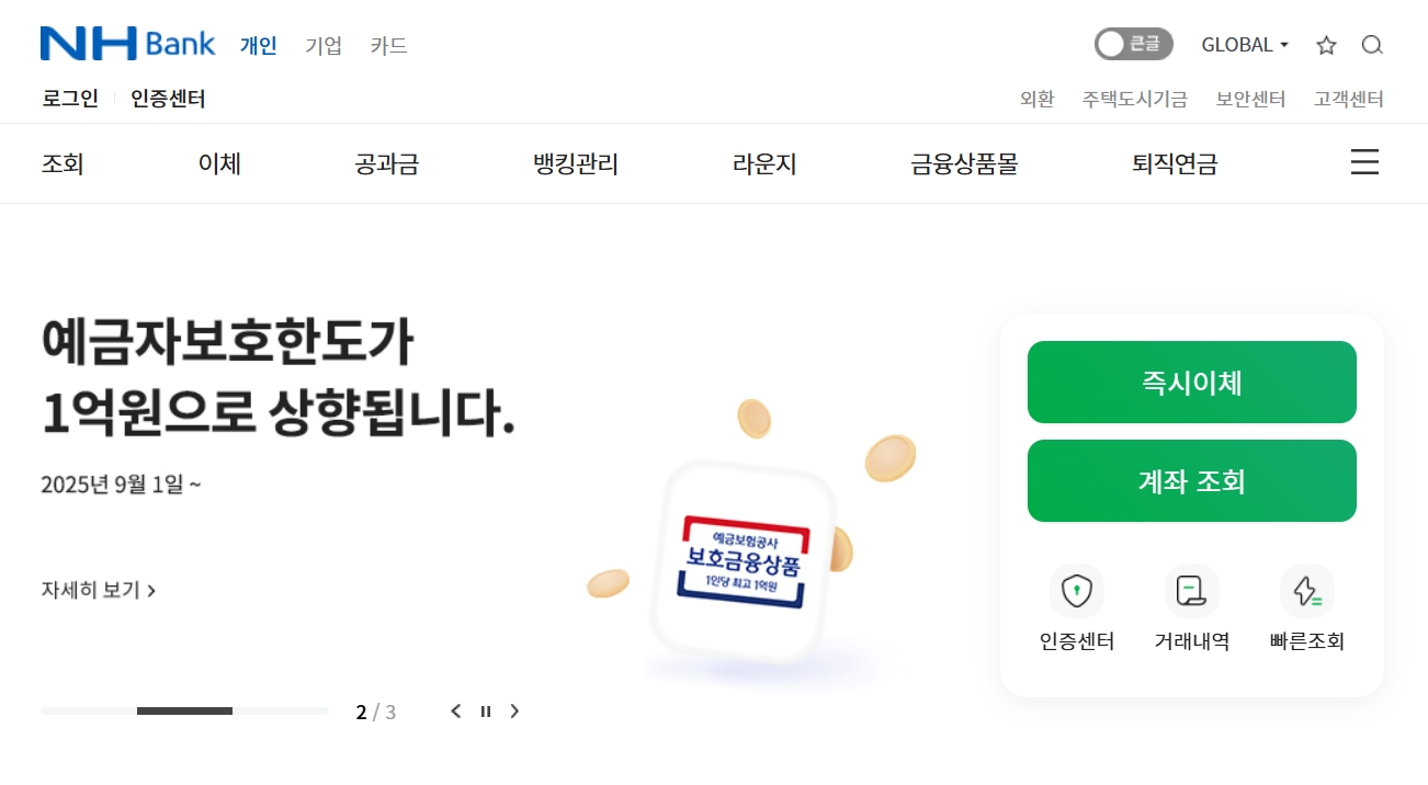 - 농협 공식 인터넷뱅킹 사이트: 개인/기업 서비스 구분되어 있어 편리해요
