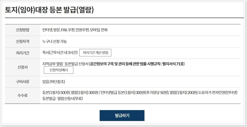 구 토지대장 발급 방법